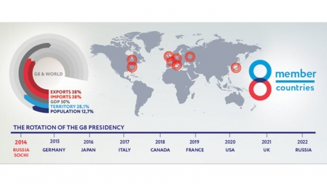 (VOVworld) – Russia officially began its Group of Eight, G8, presidency on January 1, 2014. Russia is fortunate that member economies have been showing signs of recovery, but Russia will face a challenge in persuading G8 members to reach a consensus on some serious international issues.
