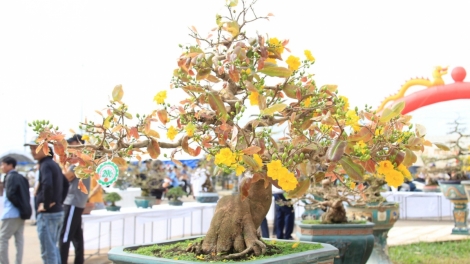 (VOVWORLD) - 5,000 yellow apricot trees of all shapes and sizes were on display in An Nhon town, Binh Dinh province, last weekend. Locals and tourists were amazed by the beauty of the ornamental plants worth hundreds of thousands of USD.