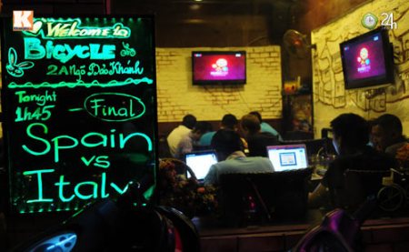 | Die Fußball-Fans warten auf dem Finalspiel zwischen Spanien und Italien in einem Cafe in Hanoi. (Foto: Internet) |