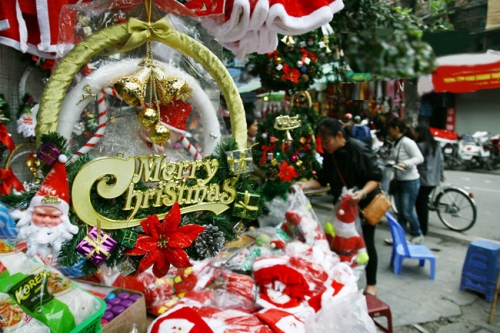 | Verschiedene Weihnachtsschmucks werden auf der Hang Ma-Straße in Hanoi verkauft. |