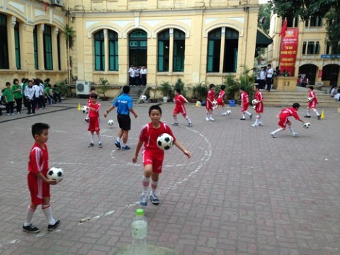 Schüler spielen Fußball auf dem Hof der Schule. (Foto: bongda24h.com) |