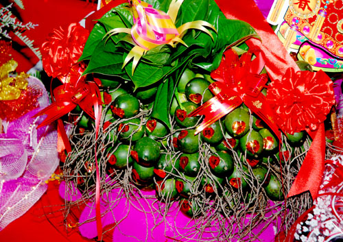 | Betelnüsse und Arekablätter für Verlobungsfeier. |
