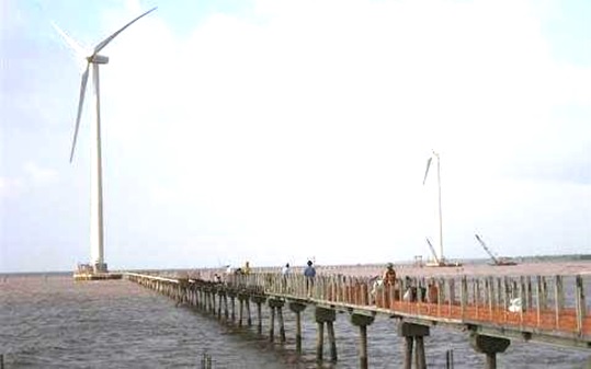 | Alle Turbinen des Windparks Bac Lieu wurden entlang des Dammes des Ostmeeres eingerichtet. (Foto: baclieu.gov.vn) |