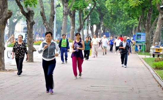 | Hanoier gehen am frühen Morgen am See spazieren. (Foto: vivuhanoi.com) |