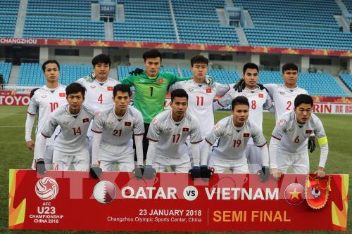 Die vietnamesische U23-Mannschaft vor dem Halbfinalspiel gegen Katar.