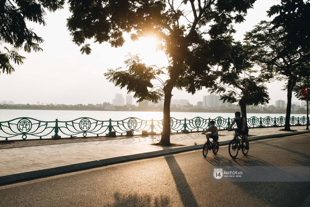 In Corona-Zeiten interessieren sich zahlreiche Hanoier dafür, am frühen Morgen rund um den Westsee mit Fahrrad zu fahren. (Foto: kenh14.vn) |