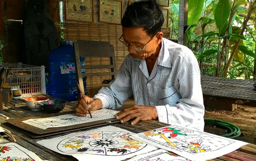 | Künstler Ky Huu Phuoc malt volkstümliche Bilder. (Foto: Le Hieu) |