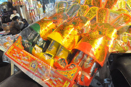 Entlang der Hang Ma Straße in Hanoi werden sehr viele Opfergaben aus Papier verkauft. Bui Bich Thuy, die im Stadtviertel Long Bien wohnt, kauft auch Opfergaben für die Küchenkönige: