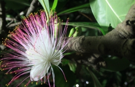 | Blüten des Mandelseebäume mit quadratischen Früchte. (Foto: Internet) |