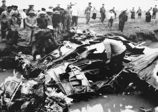 Der erste abgeschossene Bomber B-52 in der Gemeinde Phu Lo in Dong Anh (Hanoi) am 18.12.1972. (Foto: VNA)