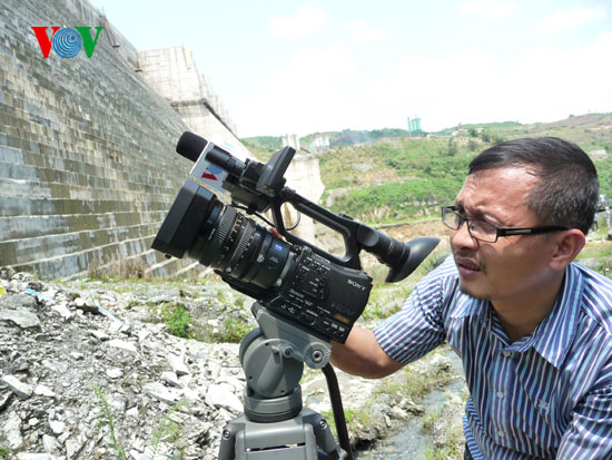 | VOV-Korrespondent arbeitet beim Wasserkraftwerk Song Tranh 2. |