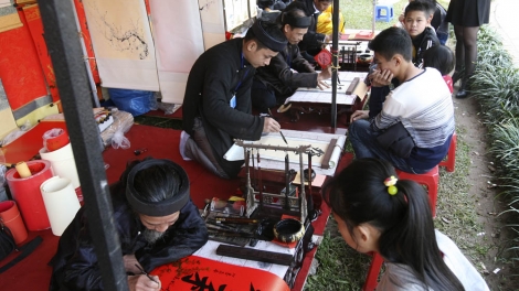 (VOVWORLD) - Bitten um Kalligraphie ist schon sehr lange ein Brauch zum Neujahr der Vietnamesen. Wenn das neue Jahr kommt, sieht man sowohl in Städten als auch auf dem Land Männer, die Kalligraphie für andere schreiben. Früher waren dies alte Lehrer, die die chinesische Schrift oder die alte Nom-Schrift der Vietnamesen kannten. Menschen, die um eine Kalligraphie bitten, wünschen sich Gutes im neuen Jahr, vor allem gute Leistungen ihrer Kinder an der Schule.