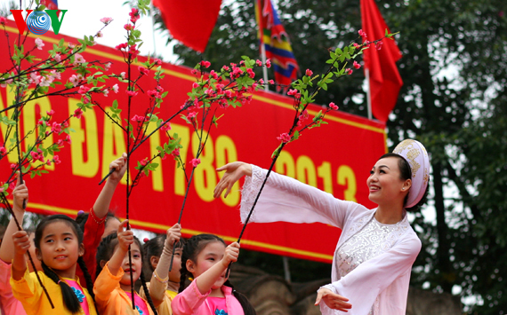Während des Festes wurden die Schlacht und der historische Sieg auf dem Dong Da-Hügel von Künstlern im Cheo-Theater Hanoi dargestellt.