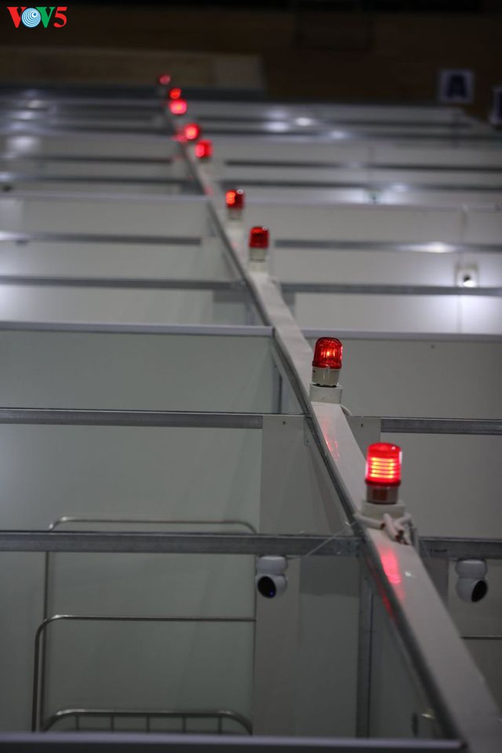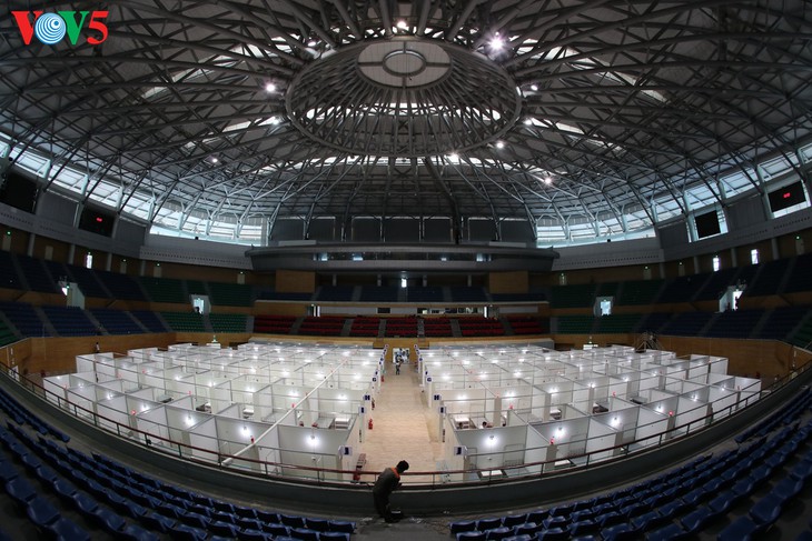 Das Larazett in der Sporthalle Tien Son wird je nach epidemischer Situation genutzt. Im Falle des Ausbruchs der Patientenanzahl wird dieser Ort Patienten empfangen und sie behandeln.