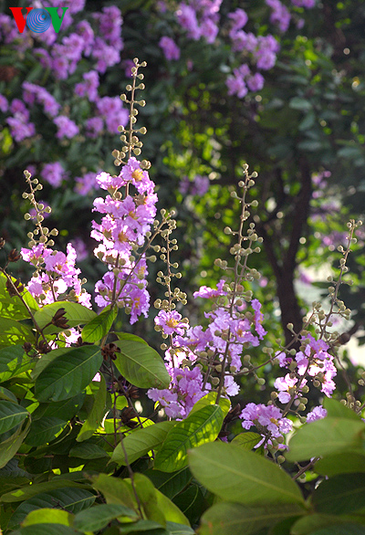 (VOVworld) – Derzeit ist der blaue Himmel von den hellroten Blüten der Flammenbäume und von den dunkelvioletten Blüten der indischen Lagerströmie geprägt. Das ist das deutliche Signal für den Sommer in Vietnam. Die Farbe der beiden Blüten erinnern uns an die Schulzeit und manchmal an das Treueversprechen der Liebespaare.