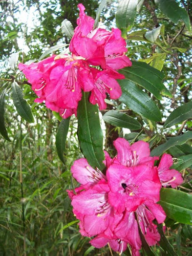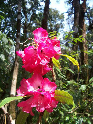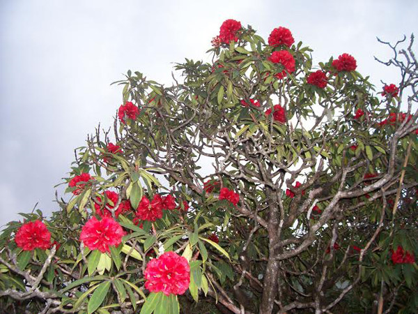 | Rote Rhododendren, deren Baum klein ist und in der Region in der Höhe von 2800 Meter über dem Meeresspiegel wächst. |