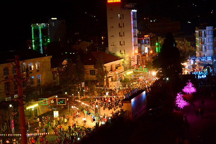 | In diesem Jahr ist das Buchweizen-Fest am 15. Oktober eröffnet worden, das viele Touristen nach Dong Van gezogen hat. Die Straßen sind am Abend voll von Touristen. |