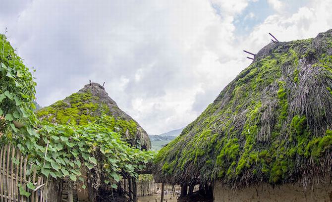Die Dächer bestehen aus vielen Schichten von Gräsern, die bis zu einem halben Meter dick sind. Daher sind die Häuser im Sommer kühl und im Winter warm.