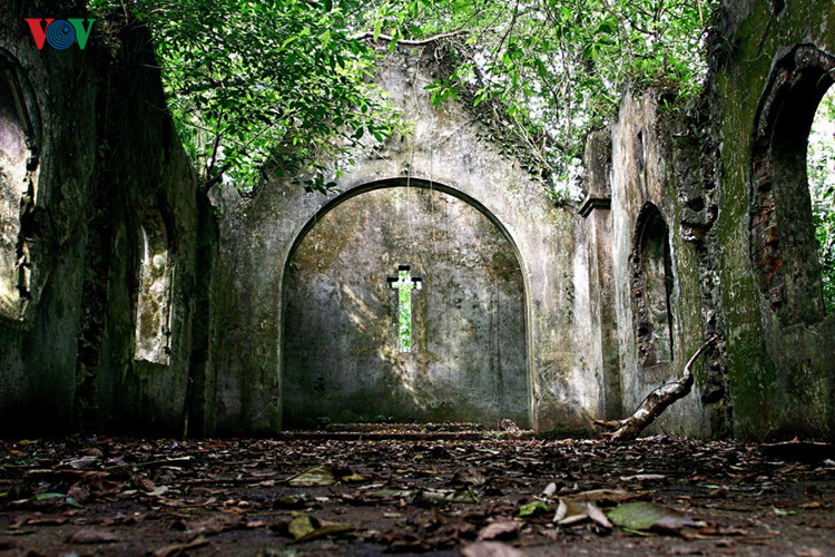 Die Ruine der Kirche auf dem Berg Ba Vi in der Umgebung von Hanoi. Sie wurde früher von Franzosen gebaut, heute befinden sich hier nur Reste des Bauwerks.
