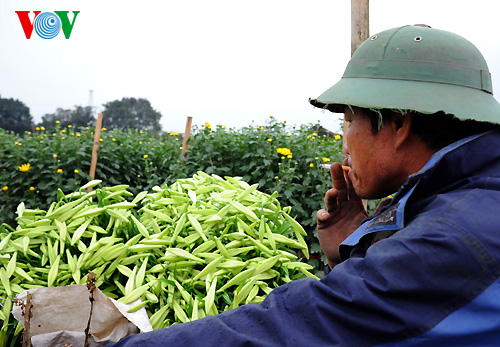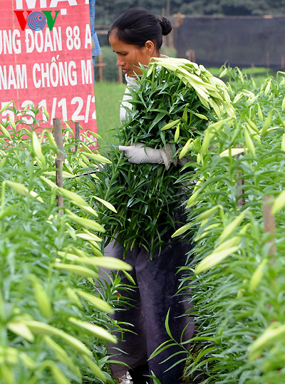 (VOVworld) – Im April ist die Zeit, da die Lilien blühen. Seit Anfang des Monats beschäftigen sich die Bewohner im Dorf Tay Tuu bei Hanoi damit, die Lilien zu ernten.
