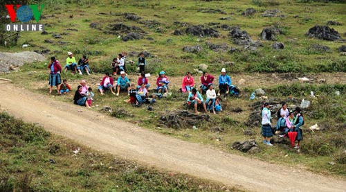 Die Dörfer in Moc Chau sind wie jedes Jahr mit rosafarbenen Pfirsichblüten und weißen Pflaumenblüten verziert. Dazu kommen noch die bunten Röcke der Mong-Mädchen. Bei jedem Schritt klimpern die Silbermünzen, die die Mädchen um ihren Bauch herum tragen. Auf dem Berg flirtet ein Junge mit einem Mädchen. Sehen Sie in den folgenden Bildern die Atmosphäre des Neujahres im Dorf Ba Phach und an einigen anderen Orten im nordvietnamesischen Moc Chau.
