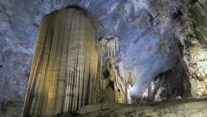 | Von weitem ähnelt dieser Tropfstein einem Wasserfall. |