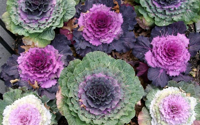 | Mit bunten Blüten werden viele Kohlsorten zur Dekoration eingekauft. |
