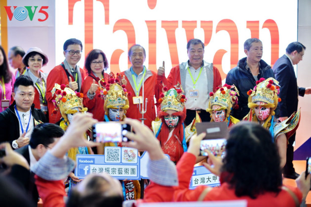 | Die Vorführung einer traditionellen Theater-Kunst bei Stand von Taiwan. |