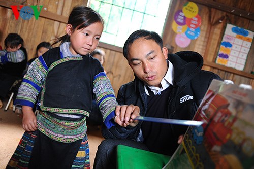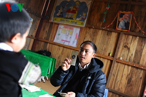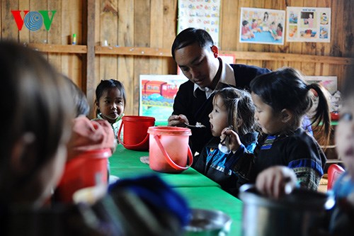 | Seit zwei Jahren arbeitet Erzieher Cu A Giang, ein Angehöriger der Mong-Minderheit, im Kindergarten Lao Chai in der Bergprovinz Yen Bai. Er kümmert sich dort täglich um die kleinen Kinder. |