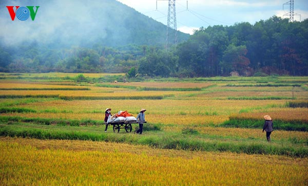 Der Reis ist reif auf den Feldern. Die Sonnenstrahlen bescheinen die Felder, der Geruch des frischen Regens vermischt sich mit dem Duft des reifen Reises.