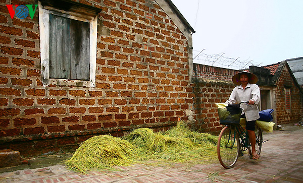 | Das Reisstroh trocknet auf den Wegen des Dorfes… |