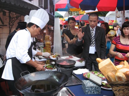(VOVworld) - Im Rahmen der europäischen Tage ist in Hanoi ein europäisches kulinarisches Festival veranstaltet worden. Organisiert wurde es von der europäischen Industrie- und Handelskammer und der Nationalbibliothek in Hanoi. Dabei nahmen unter anderem einige bekannte Hotels und Restaurants in Hanoi teil wie Metropole, Sofitel Plaza, Hilton und Mövenpick. Sie präsentierten den Besuchern ihre Spezialitäten aus Europa. Während des Essfestivals konnten die Besucher Auftritte vom DJ Oliver Massmann und der Band Hi Jinks genießen.