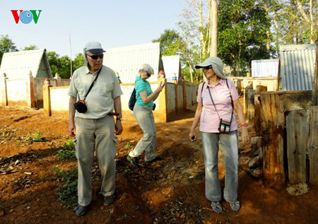 | Ausländische Touristen besuchen die Beinhäuser der Volksgruppe der Ba Na. |
