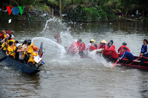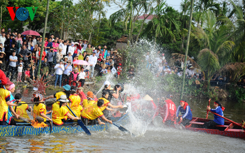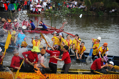 | Drei Frauengruppen, die das Bootsrennen gewinnen, dürfen sich weiter an Reiskochen- und Entenfang-Wettbewerben auf dem Fluss beteiligen. Diese Wettbewerbe sind am beliebtesten. |