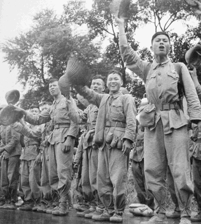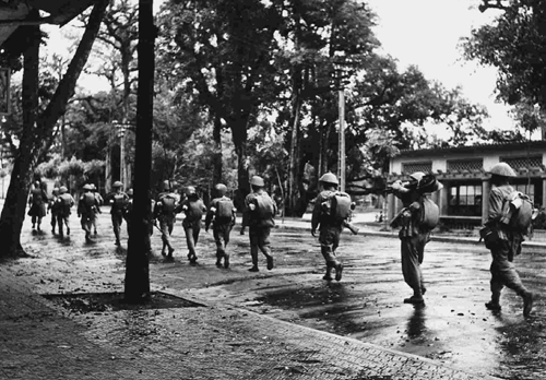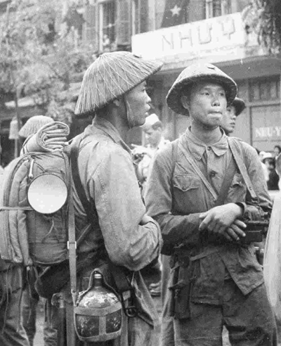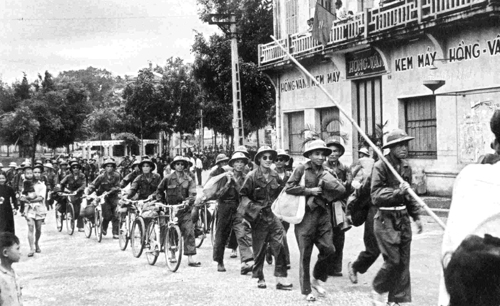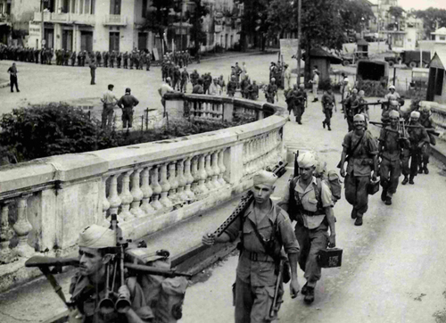 | Die Soldaten marschieren vorwärts nach Hanoi. |