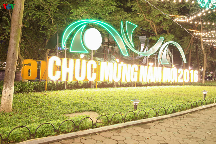 | Das Stadtzeichen Hanois aus LED-Leuchten ist überall zu sehen. |