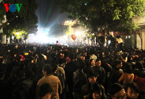 (VOVworld) – Mehrere Tausend Menschen in der vietnamesischen Hauptstadt Hanoi haben auf den Straßen das neue Jahr 2014 gefeiert. Die Menschen beglückwünschten und umarmten sich.