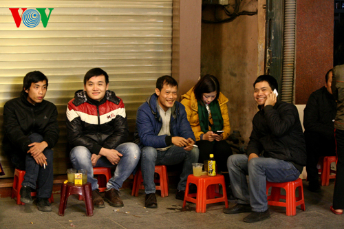 | Jugendliche warten am Hoan Kiem-See auf das Neue Jahr. |