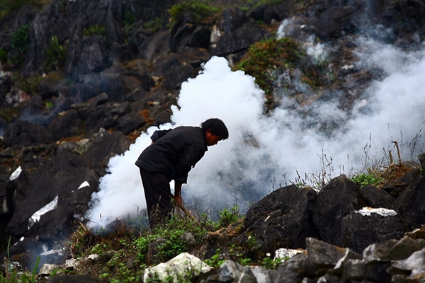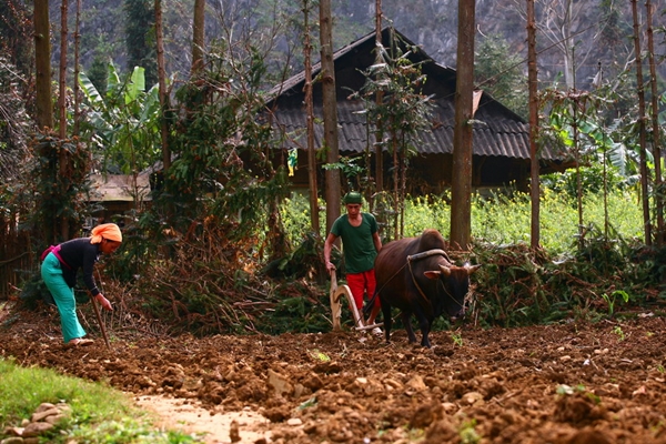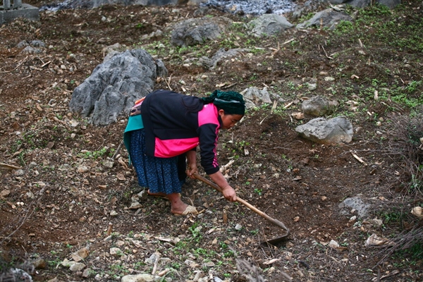 | Arbeit am Fuß eines Berges in der Gemeinde Sinh Lung im Kreis Dong Van. |