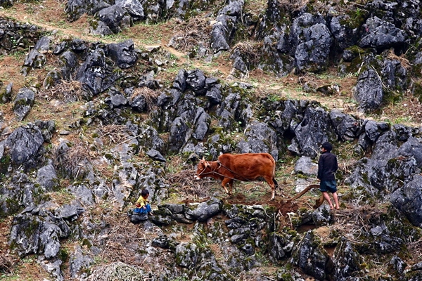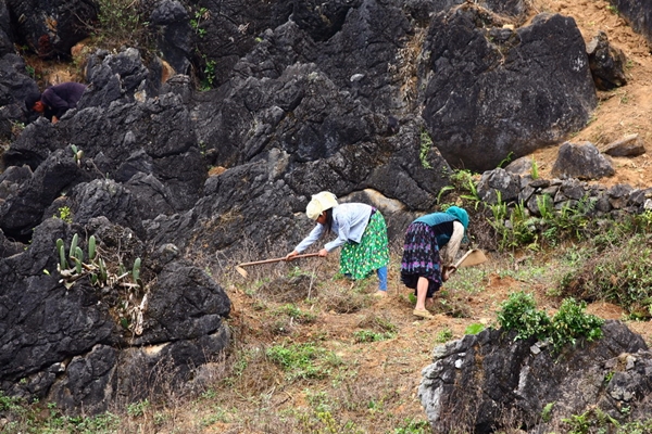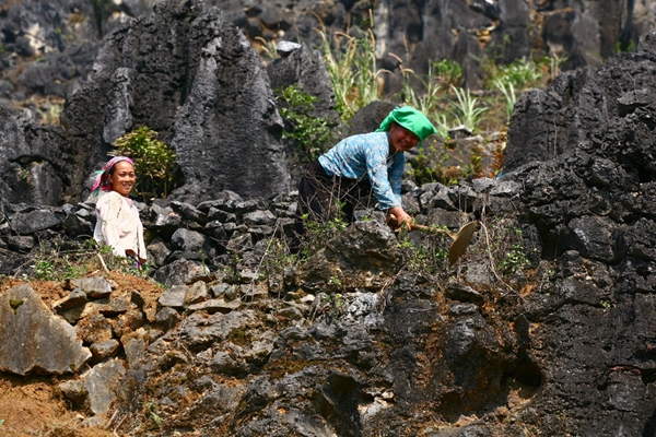 (VOVworld) - Auf dem Bergplateau Dong Van gibt es mehr Steine als Boden. Deshalb müssen die Bewohner hier sehr hart arbeiten, um ihre Felder bebauen sowie Bäume auf der steinigen ausgedörrten Erde pflanzen zu können.