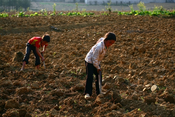 | …Wie in Quan Ba müssen zwei Frauen die Saaten auf dem Berghang ausbringen. |