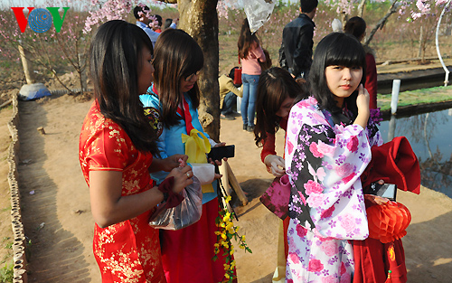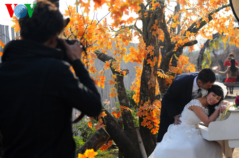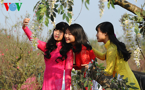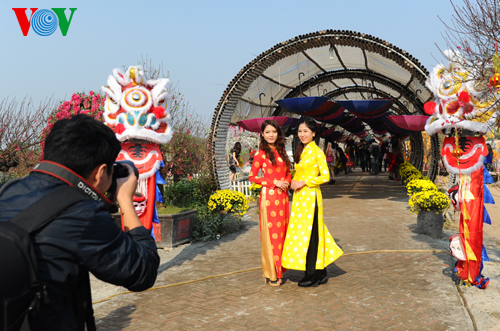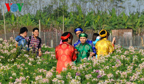 (VOVworld) – Im Vorfeld des traditionellen Neujahrsfest Tet sind die Blumengärten in Nhat Tan in Hanoi immer voll von jungen Leuten und jungen Ehepaaren, die hier Fotos machen wollen.