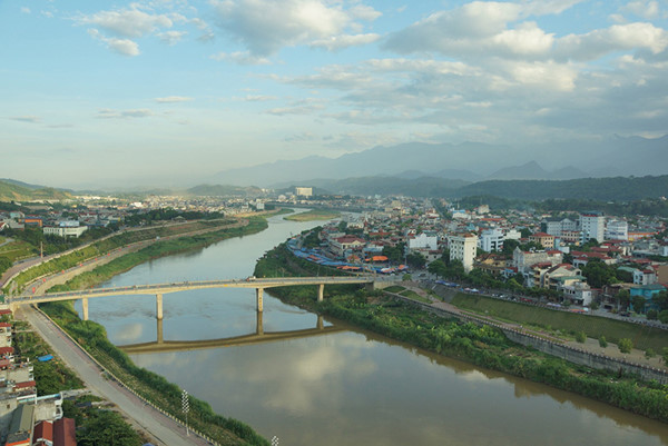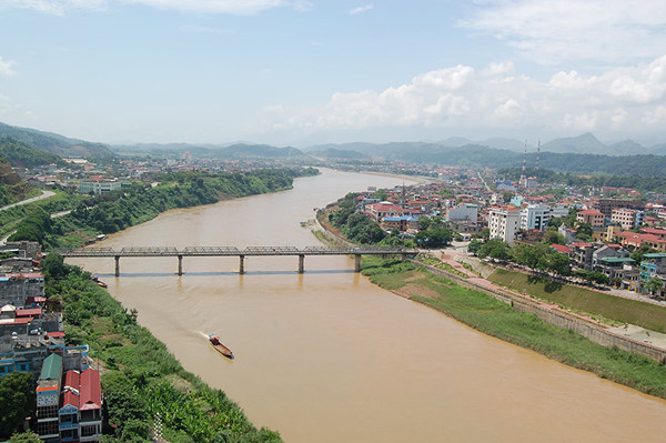 | Die Gegend der Kim Thanh-Brücke beim ersten Spatenstich damals. Die Brücke verbindet Lao Cai (Vietnam) und Hekou in der chinesischen Provinz Yunnan. |