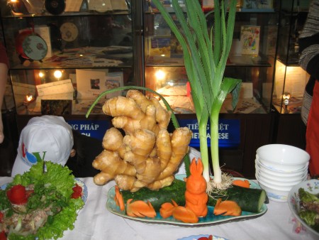 | Ein einzigartiges Werk der vietnamesischen Redaktion mit Ingwer, Lauch und Karotte. |