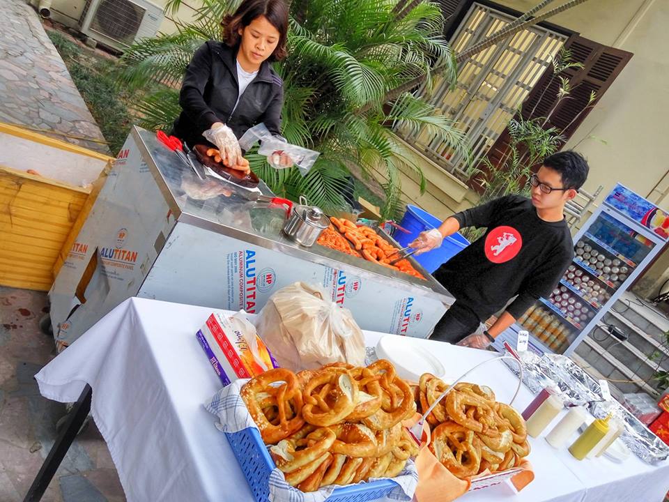 | Einige traditionelle deutsche Speisen brachten den Zuschauern ein warmes Gefühl an diesem kalten Wintertag in Hanoi. |