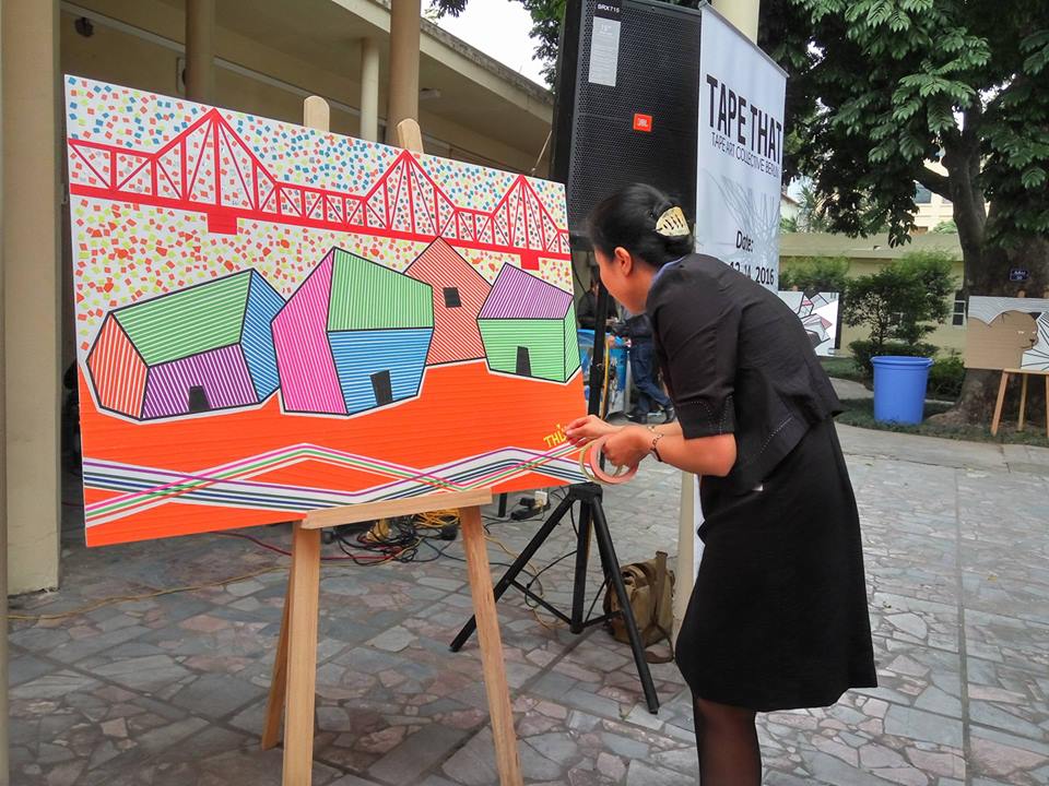 (VOVworld) – Auf dem Gelände der Deutschen Botschaft in Hanoi hat am Mittwoch eine Ausstellung des Berliner Künstlerkollektivs „Tape That“ stattgefunden. Präsentiert wurden auch zahlreiche Werke der Teilnehmer des zweitägigen Workshops von Tape That. Die Klebeband-Werke unterscheiden sich durch die verwendeten Farben bis hin zu den Themen. Einige traditionelle deutsche Speisen brachten den Zuschauern ein warmes Gefühl an diesem kalten Wintertag in Hanoi.