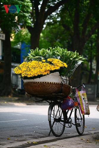 Fast überall sieht man auf den Straßen in Hanoi Liliengewächse in verschiedenen Farben. Straßenverkäufer bieten sie auf ihren Fahrrädern an.