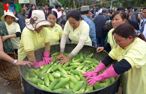 (VOVworld) – Der Mais ist schon lange mit dem Boden und der Menschen im Dorf Cam Nam in der Provinz Quang Nam verbunden. Am 15. Januar hat das Dorf Cam Nam ein Mais-Fest veranstaltet. Das Mais-Fest ist eine Gelegenheit für das Dorf, den Mais mit dem Markenzeichen Cam Nam den Touristen aus dem In- und Ausland vorzustellen. Dank des fruchtbaren Bodens am Ufer des Flusses Thu Bon schmeckt der Mais aus Cam Nam einzigartig. Während des Festes können die Bewohner und Touristen den ganzen Verarbeitungsablauf des Maises beobachten und viele Speisen aus Mais Cam Nam essen. Darunter sind gekochter Mais, gegrillter Mais, Kompott aus Mais usw. Während des Festes wurde zum ersten mal die Produktion und die Zubereitung der Produkte aus Mais präsentiert. Dadurch werden alle Bevölkerungsschichten mobilisiert, die traditionelle Spezialität von Cam Nam zu bewahren. Die Stadt Hoi An verfügt derzeit 150 Hektar Fläche zum Anbau des Mais. Rund 100 Haushalte pflanzen Mais und 16 Familien beschäftigen sich mit dem Maiskochen und liefern dann in der ganzen Provinz Quang Nam rund 1000 Maisstücke pro Tag. Jeder Hektar Mais bringt den Bewohnern hier etwa 2100 Euro. Hier sind einige Fotos über das Mais-Fest in Hoi An.