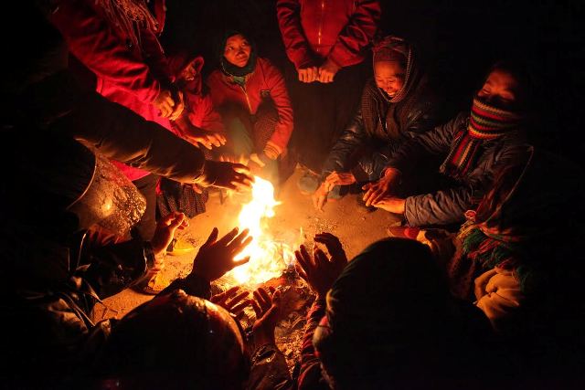 Ein Lagerfeuer für die Menschen, die bereits in der Nacht auf dem Markt angekommen sind und auf den Morgen warten.