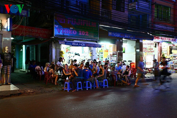 | Die Restaurants und Bars an der Ecke sind immer gut besucht. Sie haben eine gute Aussicht, wie hier in der Bar Go2 an der Ecke der De Tham und der Bui Vien-Straße. |